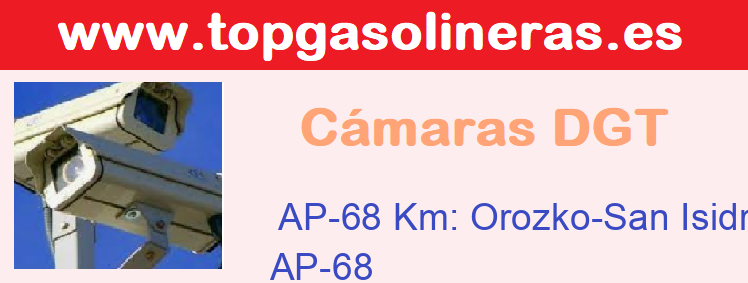 Le facilitamos acceso a las Cámaras de la DGT en el Punto kilometríco Orozko-San Isidro - 21.400 en la carretera AP-68 Provincia de bizkaia con imagenes en directo y en tiempo real (la imagen se actualiza cada poco tiempo) con la situación de la calzada en estos momentos. Le puede ser de gran ayuda para conocer el estado de tráfico en su ruta.