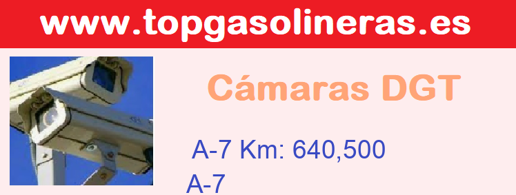Le facilitamos acceso a las Cámaras de la DGT en el Punto kilometríco 640,500 en la carretera A-7 Provincia de murcia con imagenes en directo y en tiempo real (la imagen se actualiza cada poco tiempo) con la situación de la calzada en estos momentos. Le puede ser de gran ayuda para conocer el estado de tráfico en su ruta.